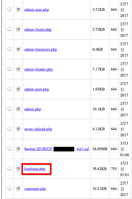 wp-adminに置いたbig.dump